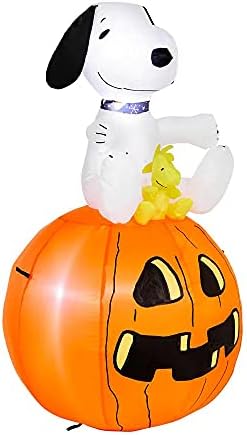 Amazon Com Gemmy Industries Halloween Peanuts Snoopy With Woodstock Sitting On Pumpkin Inflatable Airblown Light Up Yard Display Patio Lawn Garden